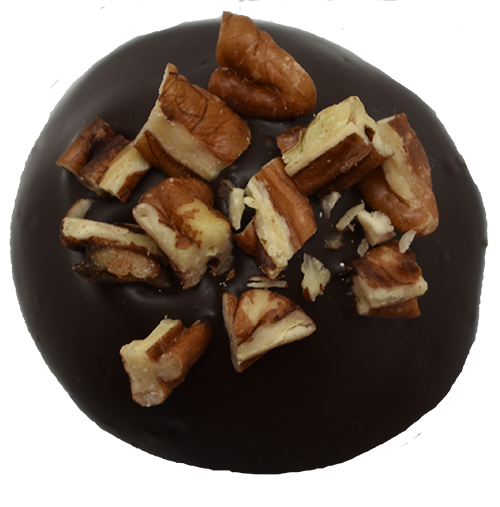 Ingredients: White chocolate (sugar, cocoa butter, whole milk powder, soy lecithin and natural vanilla flavoring), Dark chocolate (sugar, chocolate liquor [processed with alkali], cocoa butter, milkfat, soy lecithin added as an emulsifier and natural flavors), Dark chocolate coating (sugar, vegetable oils [palm kernel, palm], cocoa processed with alkali, lactose [milk], sunflower lecithin [an emulsifier], vanilla), Butter (pasteurized cream [ milk], salt), heavy cream (milk), raw pecans, Praline (caramel [milk, corn syrup, sugar, cream, whey, salt] and pecans), Invertase and glycerol (invertase from Saccharomyces cerevisiae), Potassium Sorbate (mold inhibitor), Cornstarch.