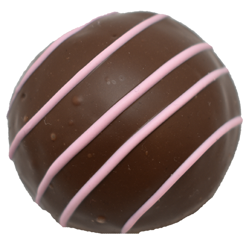 Ingredients: Dark chocolate 70% (Chocolate liquor, sugar, cocoa butter, soy lecithin, and vanilla), Milk chocolate (sugar, cocoa butter, milk, chocolate liquor, soy lecithin, and vanilla), Heavy cream (milk), butter (pasteurized cream [milk], salt), White coating (sugar, hydrogenated palm kernel oil, nonfat milk powder, soy lecithin, monoglycerides, artificial color (titanium dioxide) and artificial flavor, sunflower lecithin), Pink coloring (lecithin, propylene glycol, FD&C red 3 [E127]), Raspberry flavoring (Artificial flavors, propylene glycol, water, FD&C red 40, FD&C blue 1, citric acid), Invertase and glycerol (invertase from Saccharomyces cerevisiae), Potassium Sorbate (mold inhibitor), Cornstarch.